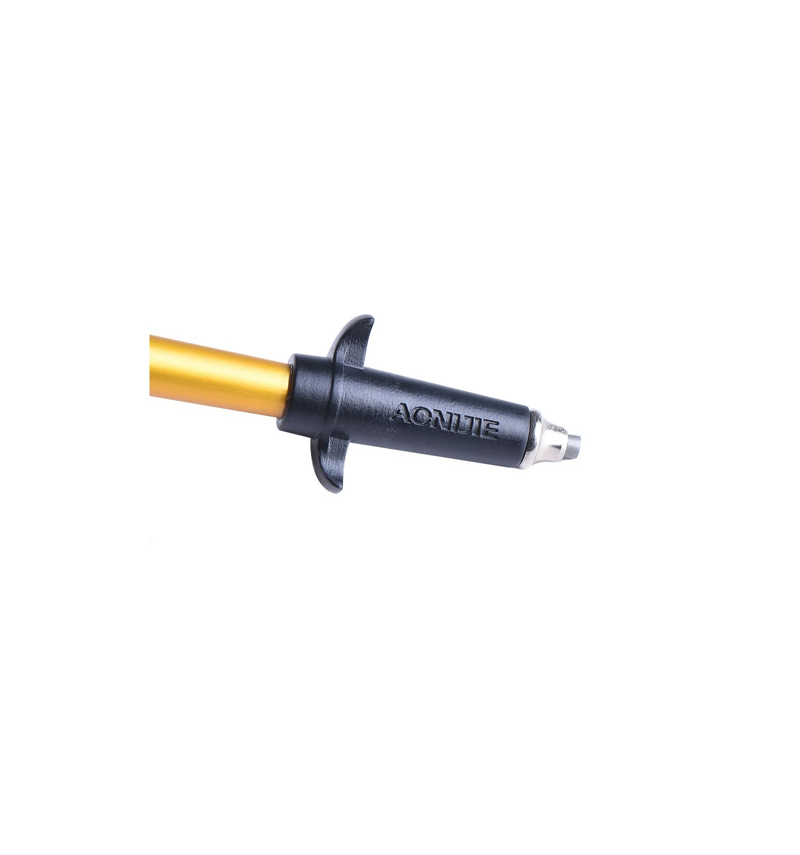 - La forma de dejar el bastón rígido es ,rapido y sencillo, dejar caer los tramos del bastón agarrándolo desde la empuñadura y tirar de la empuñadura hacia arriba en dirección vertical (no zig-zag) hasta que se oiga un ‘clic’. Este sonido indica que el bastón ha quedado fijado mediante un botón que está colocado justo debajo de la empuñadura y que salta en el momento en tiramos hacia arriba