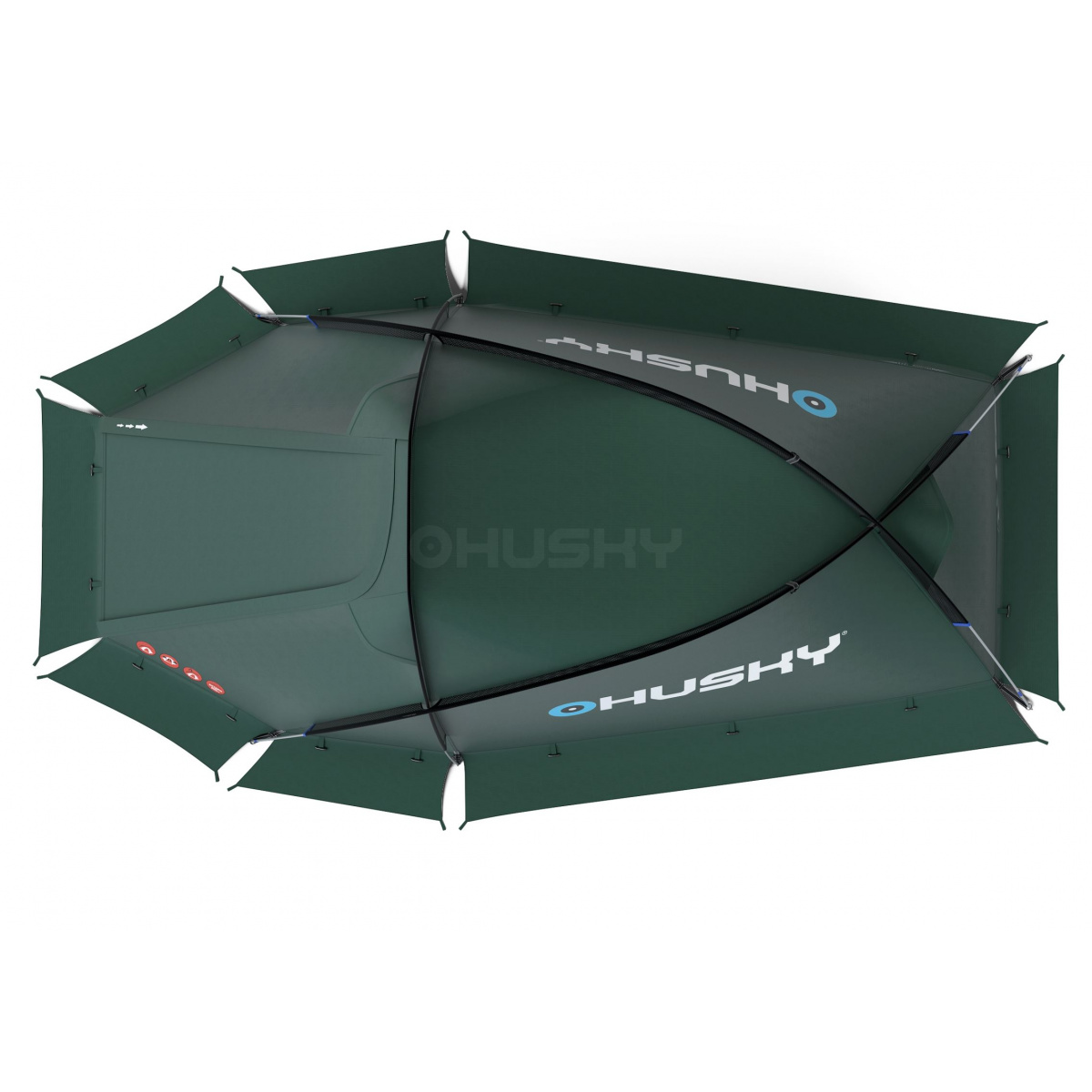 El Flame 2 de la línea Husky Extreme es una pequeña carpa independiente de doble piel con una construcción exterior.