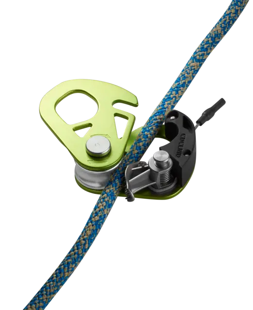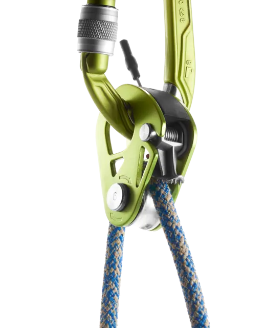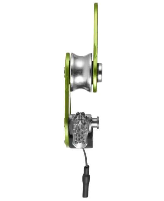 La leva, con su mecanismo de resorte integrado, se bloquea automáticamente y, gracias a su diseño especial, funciona incluso con cuerdas heladas o embarradas. Un tirador de cable permite abrir fácilmente el antirretroceso con una sola mano. El antirretroceso también puede fijarse en posición abierta para utilizar el dispositivo como una simple polea. El  orificio de conexión del mosquetón  tiene unas dimensiones generosas para que cualquier tipo de mosquetón de rosca se pueda colocar sin problemas, lo que simplifica considerablemente la instalación.