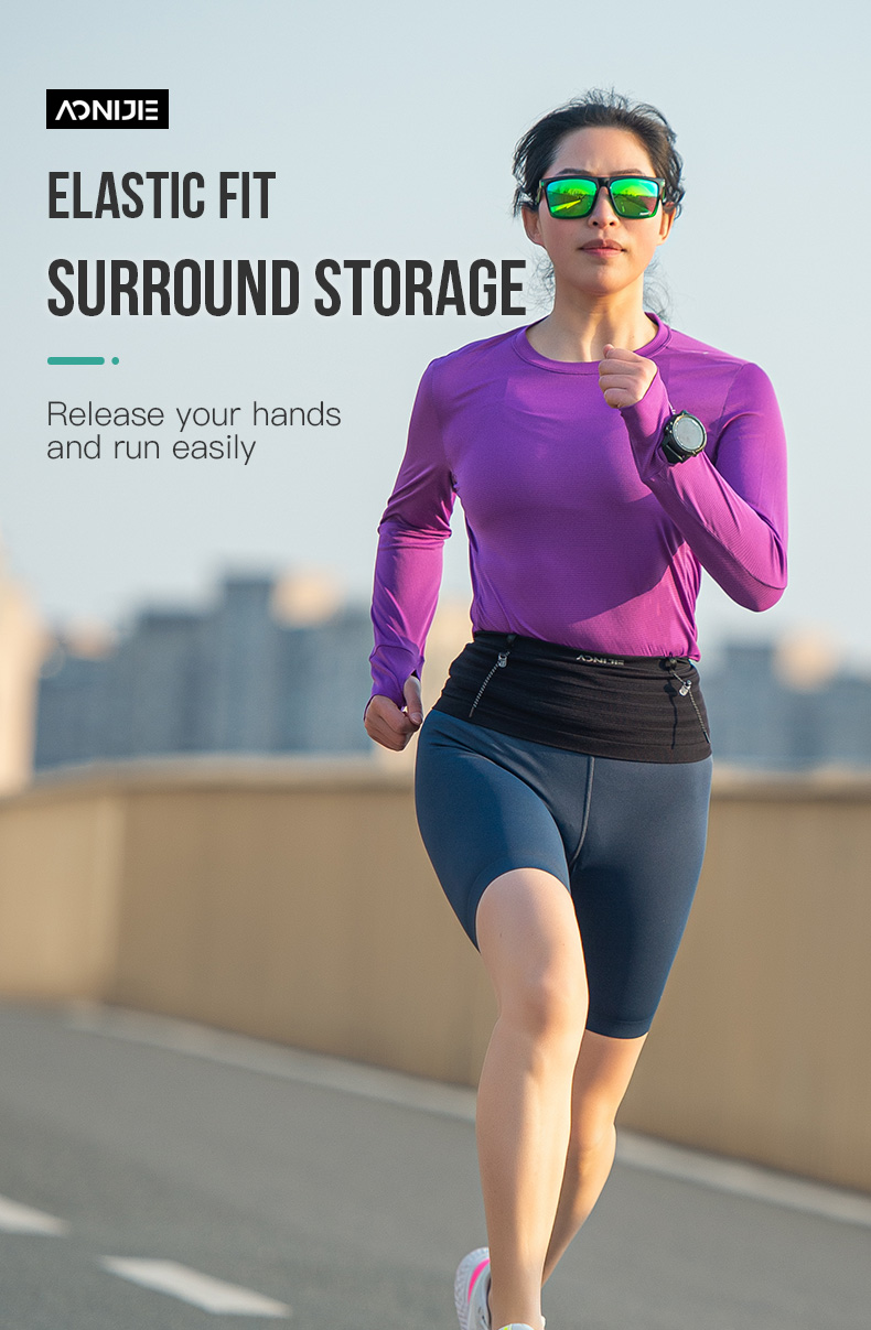 Aonijie w8116 cintura deportiva cinturón de carrera todoterreno negro Fanny Pack soporte de teléfono móvil neutro al aire libre ultraligero personalizado cintura